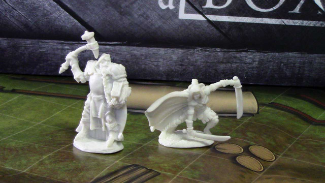 In addition to the bones miniatures, the dungeon-in-a-box kit provides one sheet of ArcKnight flat plastic tokens that pop out of the sheet and stand up in one-inch or two-inch bases, for medium and large creatures respectively. We would have liked to see a few more tokens to fill out the various encounters in the adventure module. At an approximate retail price of $2.50 per token, these are priced similarly to the reaper bones miniatures. For dungeon masters not interested in painting miniatures, the ArcKnight tokens are an excellent option.